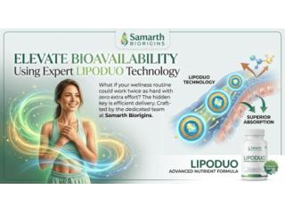 What if your wellness routine could work twice as hard with zero extra effort? The hidden key is efficient delivery. Experience the power of lipoduo technology, an advanced scientific innovation that wraps vital nutrients in a protective layer for superior absorption. Crafted by the dedicated team at Samarth Biorigins, this process ensures maximum potency reaches your cells. Step into the future of effective supplementation and give your body the premium care it genuinely deserves.