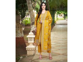 Celebrate the Yellow Day of Navratri with vibrant yellow salwar kameez sets from Mirraw. Symbolizing positivity and happiness, these outfits feature rich embroidery, mirror work, and festive borders. Pair them with oxidized jewelry for a true Navratri vibe. Shop the best Yellow salwar kameez styles now at Mirraw.