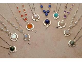 Small Gemstone Inset Silver Khanda/Adi Shakti Necklace Marion