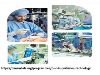 B.Sc. Perfusion Technology programs https://mmambala.org/programmes/b-sc-in-perfusion-technology focuses on the art and science of supporting vital organs during medical procedures like cardiac surgeries, ensuring optimal patient outcomes. Guided by experienced faculty and equipped with state-of-the-art facilities, students delve into cardiovascular anatomy, physiology, ******cology, and advanced technologies in heart-lung machines. MMU Ambala’s commitment to excellence and adherence to industry standards prepare graduates to excel in the specialized realm of perfusion technology, making a significant impact in surgical teams and patient care.