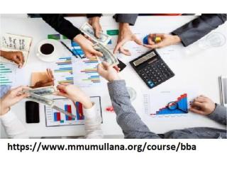 The BBA course https://www.mmumullana.org/course/bba aims at providing input to the students relevant to the business, industry and trade so that they can function in different organizations and face the challenges arising there. The course not only provides knowledge and skills in different areas of management but also provides inputs necessary for the overall development of the personality of the students.