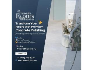 Looking for professional concrete polish near West Palm Beach, FL? Heavenly Floors Restoration provides top-notch concrete polish services to make your floors appear brand new. We specialize in concrete polish near West Palm Beach, FL, that is elegant, sophisticated, high-gloss, and stylish while providing you a durable surface for your home, office, or commercial space. With over 15 years of experience in concrete polish, we pride ourselves on using advanced equipment and eco-friendly products to give your concrete surfaces polished designs with creativity! For reliable concrete polish near West Palm Beach, FL, trust Heavenly Floors Restoration can handle all of your polishing to meet your needs. Contact us today for a consultation!