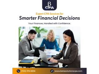 Comprehensive CPA services include company advising, audit and assurance, payroll administration, and regulatory compliance in addition to daily accounting. A CPA serves as a trustworthy advisor whether you are starting a new business, expanding operations, or making long-term wealth plans. Beta Solutions CPA provides CPA Services in Tysons.