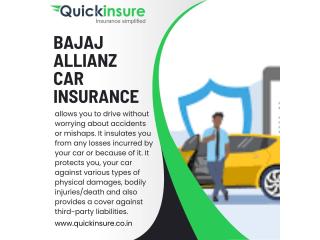 Secure your vehicle confidently with Bajaj Allianz car insurance through Quickinsure, offering flexible, affordable plans with broad protection against accidents, theft, and third-party liabilities. Benefit from a network of 4,000+ cashless garages, add-on covers like engine protector and key replacement, and seamless online renewal with no-claim bonus transfer. Choose Quickinsure to compare, buy, and manage your Bajaj Allianz car insurance with ease and peace of mind.