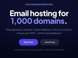 Run email on your own domain with a scalable, multi-domain platform. Manage thousands of domains, mailboxes, routing, and migration from one dashboard. Flat pricing, pooled storage, API access, and privacy-first infrastructure with no data scanning.
