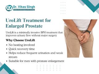 If you have been diagnosed with prostate enlargement, UroLift for Enlarged Prostate Indore offers a safe and effective alternative to conventional surgery. This minimally invasive technique focuses on relieving urinary blockage without removing prostate tissue. It is commonly recommended for men with moderate symptoms who wish to avoid long recovery periods. The procedure helps restore normal urine flow and reduces night-time urination, urgency, and discomfort. Discussing your symptoms with a qualified specialist will help determine whether UroLift is the right step toward better urinary health and improved daily living.